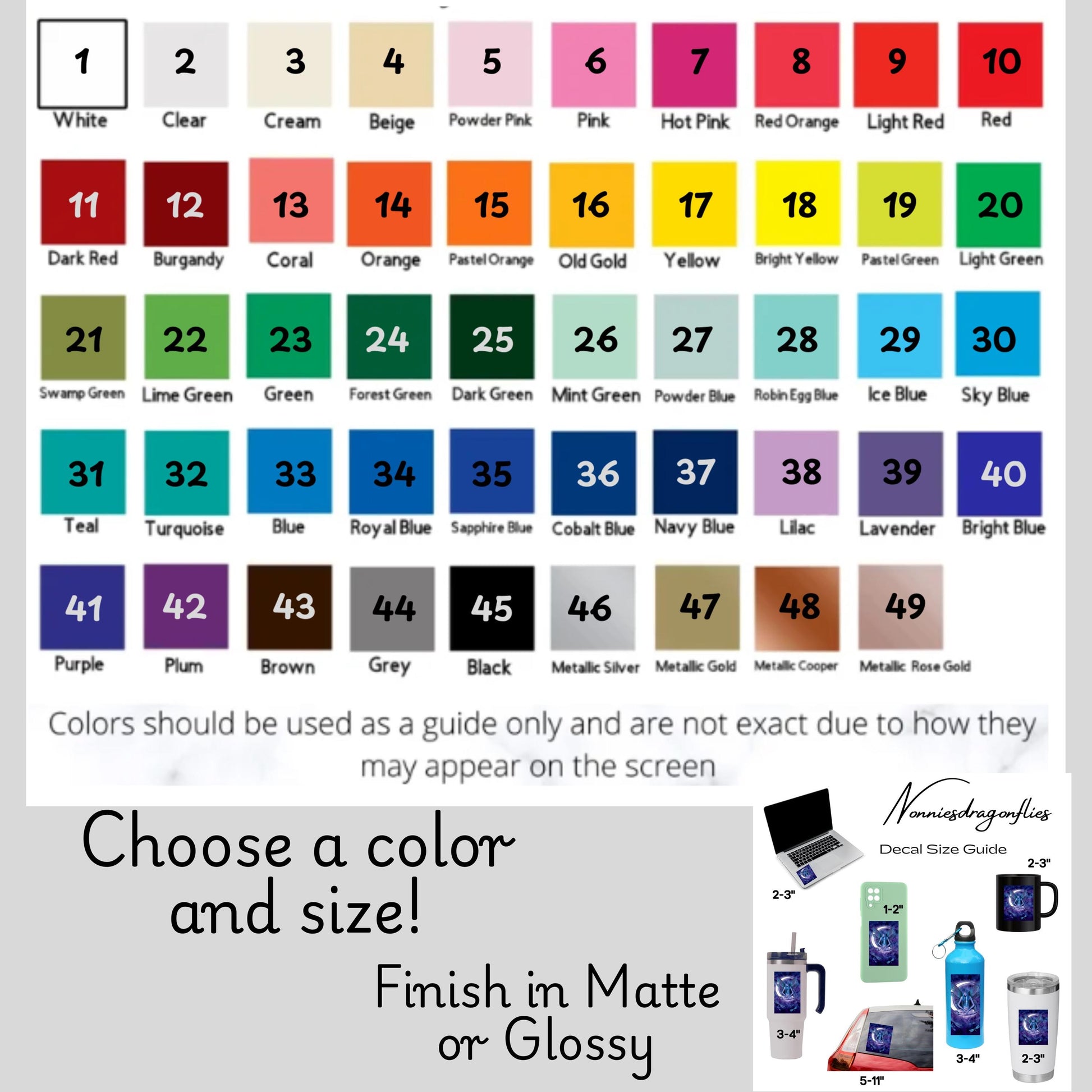 All sizes are based on the “largest” side of the decal - some of the more "detailed" decals look better as a larger size. If you are looking for a different size not listed, please message me!