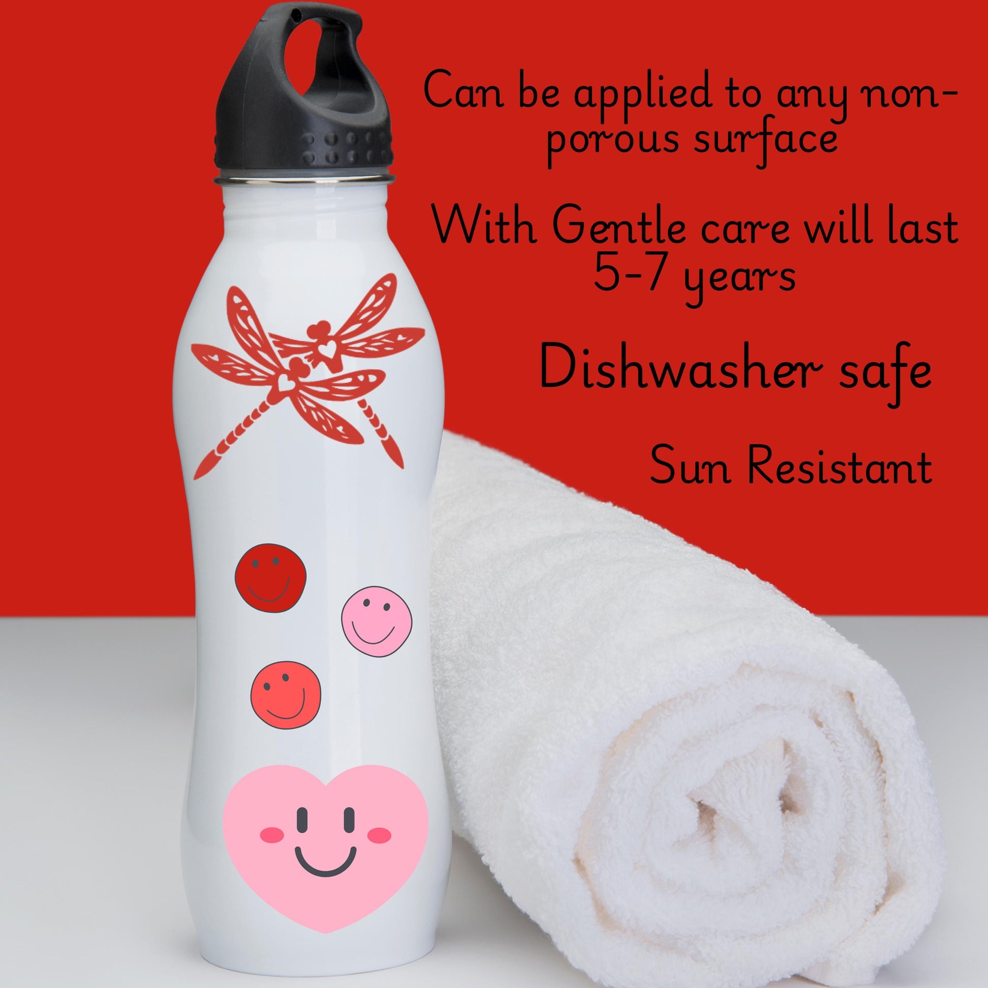 This decal is made of high-quality, waterproof, and weatherproof permanent vinyl (it can be removed but is NOT reusable). Each decal can be applied to any smooth, non-porous, clean surface, such as a car window, water bottle, cell phone, laptop, door, mirror, tile, stainless steel, glass, plastic, etc.