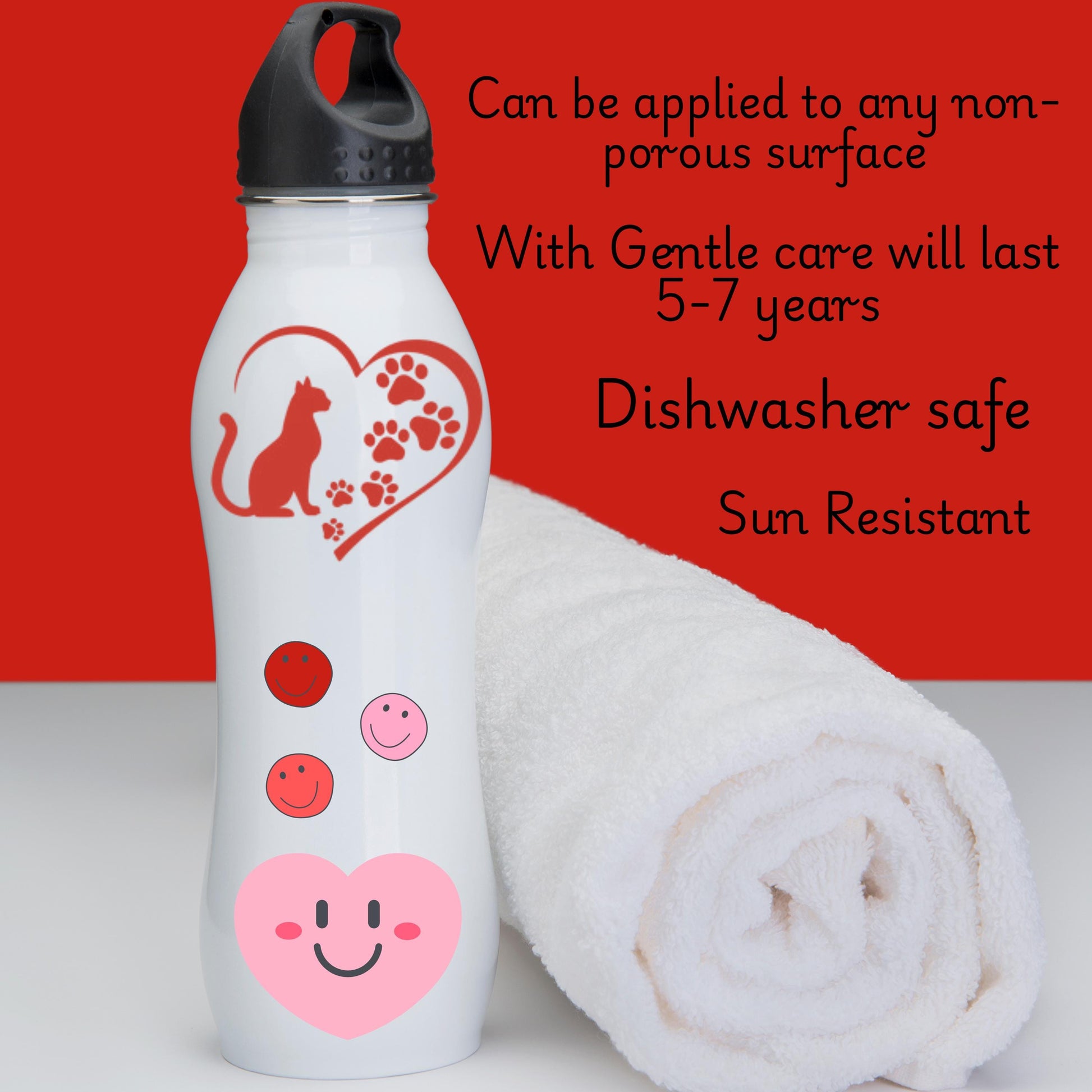 This decal is made of high-quality, waterproof, and weatherproof permanent vinyl (it can be removed but is NOT reusable). Each decal can be applied to any smooth, non-porous, clean surface, such as a car window, water bottle, cell phone, laptop, door, mirror, tile, stainless steel, glass, plastic, etc.