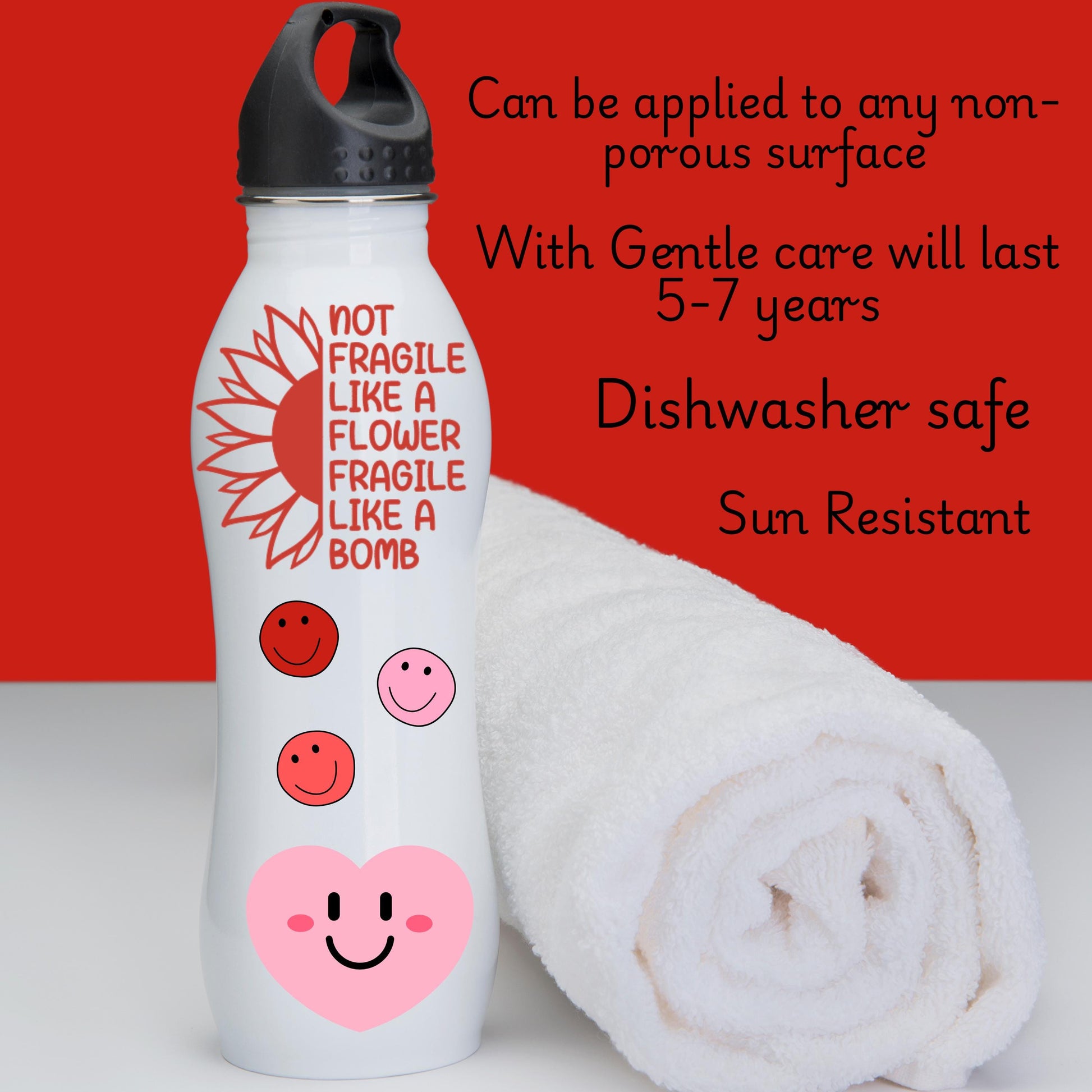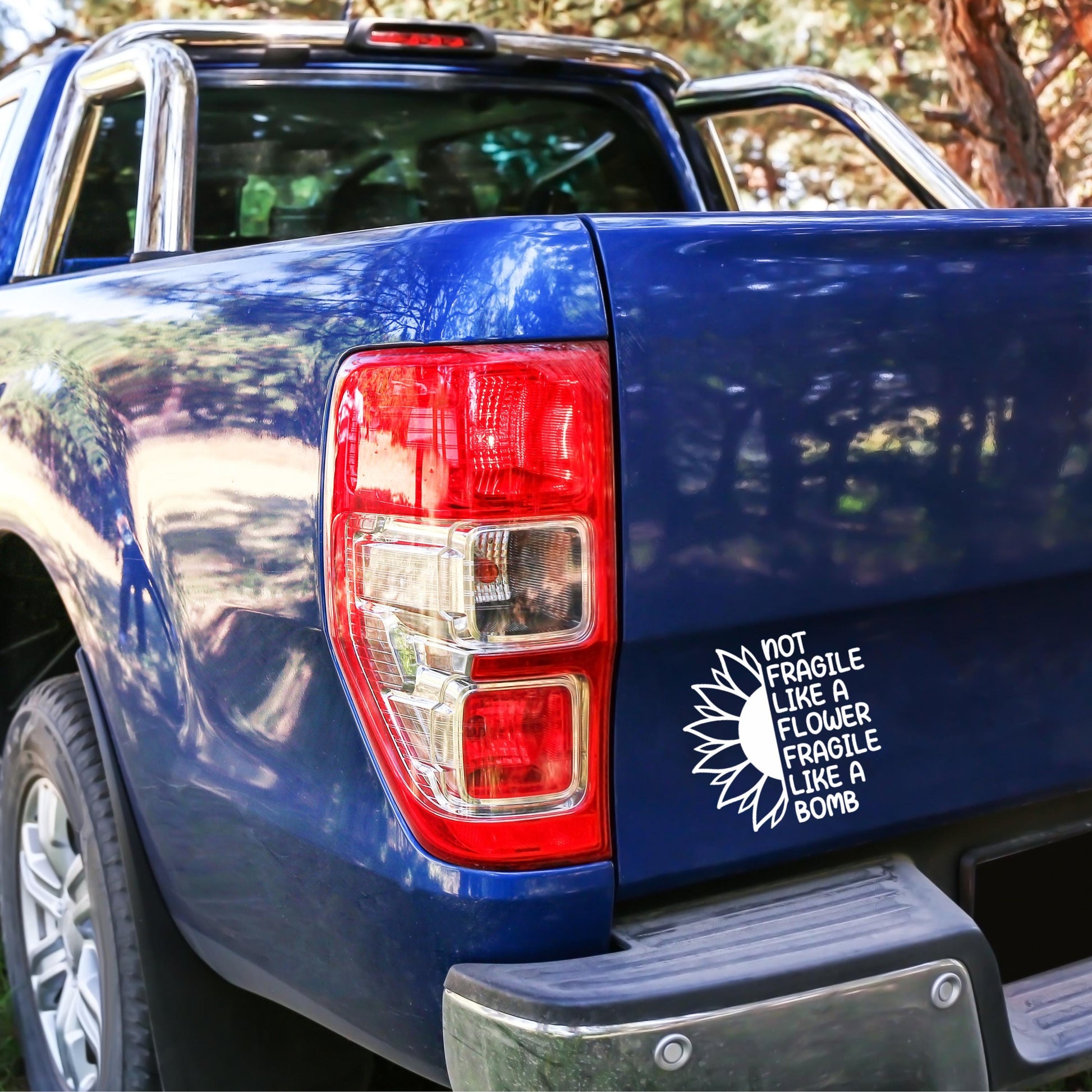 Introducing a delightful addition to your personal items—the Fragile Like A Bomb sunflower vinyl decal! This sassy and cute sticker is perfect for adorning your car, phone, laptop, water bottle, notebook, mug, or journal.